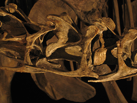 案の定、今日はグダグダに仕事をしてきた森本です。 皆様如何お過ごしですか? しかも筋肉痛のオマケ付きで。 前日にあまり眠れなかったのが最大の原因だと思うんだけどね。 口々に顔が死んでると言われましたよ。 でも、久々にストレス発散できたからそれでヨシ! 結構前なんだけど、オザムプの巻末コメントでK保神が大恐竜展へ行ってきたと書いてあったのを思い出し、森本もそれには行って写真をバカスカ撮って来たので、今更ながらアップしてみます。 パーツ撮りが多いのは森本がパーツスキーだからです。 肉付き模型が写っていなのは森本が骨スキーだからです。 上の恐竜の首の部分。 それぞれの形にはちゃんと意味があるってのがよく分かる。 このナンバリングが個人的に好き 頭部がほぼ完全な形で発掘! でも圧に負けてちょっとひしゃげてます 恐竜親子